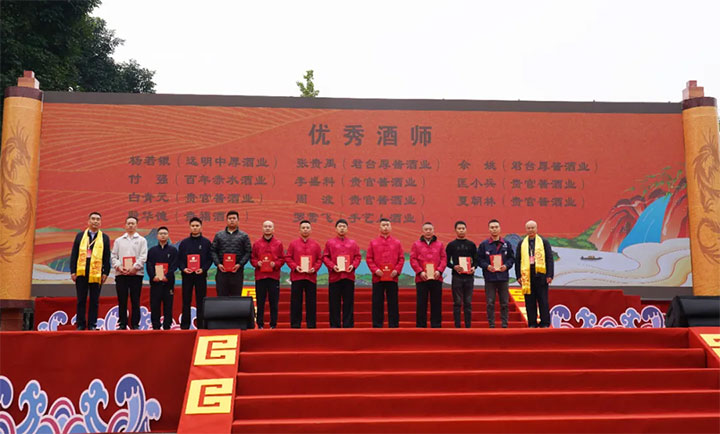 人才激励环节同步推进,活动对 11 名优秀酒师(含远明中厚酒业杨若银、君台厚酱酒业张贵禹等)及 13 名先进班组长(含远明中厚酒业刘水部、君台厚酱酒业骨天勇等)进行表彰。据悉,受表彰的酒师中 8 人拥有 15 年以上酿造经验,其中杨若银主导的 “下沙水分精准控制技术”,曾使基酒优质率提升 8%。此外,贵州远明中厚酒业有限公司、贵州贵福酒业有限责任公司获授 “赤水市酒旅融合试点单位” 牌匾。