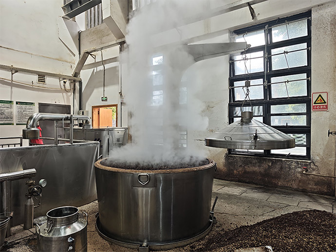 走进仁怀酱香酒庄生产车间,浓郁的酱香扑面而来,热气蒸腾的生产线上,工人们身着统一工装,正有条不紊地开展拌料、上甑、取酒等酱酒传统酿造工序,现场一派繁忙景象。据该集团生产总工王昭亮介绍,企业目前已实现全员到岗、生产设备全面启动,核心聚焦二轮次酒精细化酿造,2026 年企业计划投粮 5000 吨,启用 390 口窖池,力争实现优质酱香基酒年产 3000 吨的生产目标。
